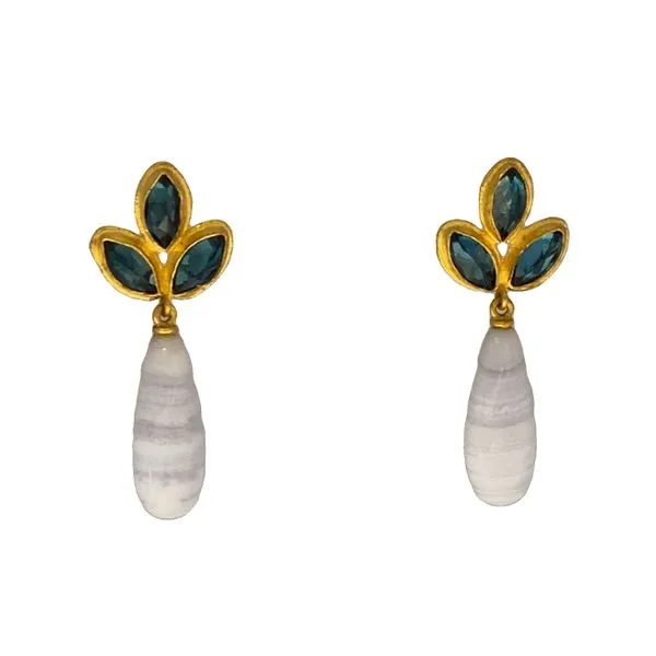 (952) 473-693124K Yellow Gold Blue Topaz and Blue Lace Agate Earrings