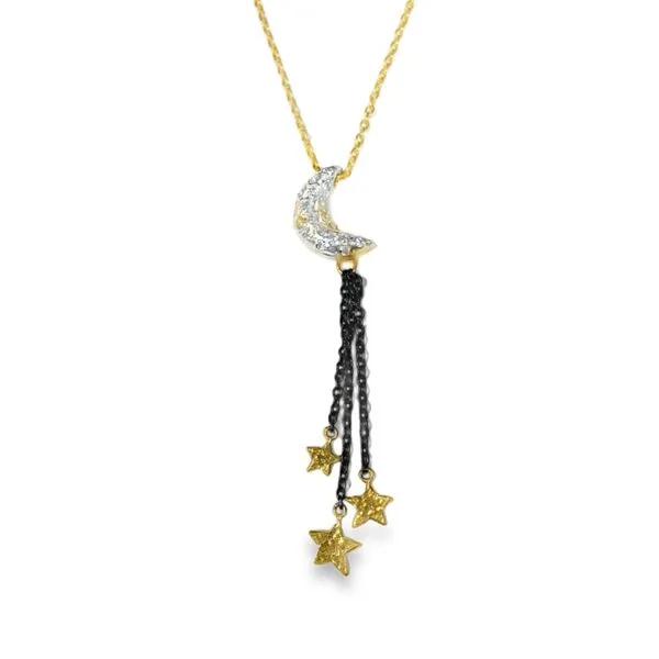 (952) 473-693124K Yellow Gold Oxidized Silver and Diamond Moon with Stars Pendant