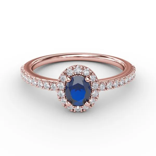 (952) 473-6931Classic Halo Sapphire and Diamond Ring