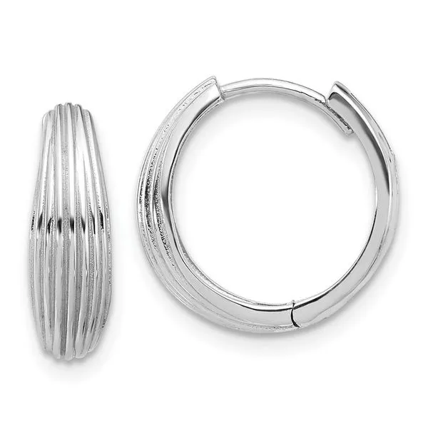 (952) 473-6931Leslie's 14K White Gold Polished and Grooved Hinged Hoop Earrings