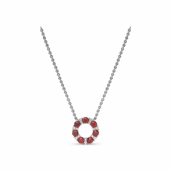 (952) 473-6931Shared Prong Ruby and Diamond Circle Necklace