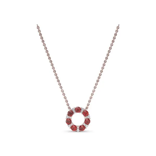 (952) 473-6931Shared Prong Ruby and Diamond Circle Necklace